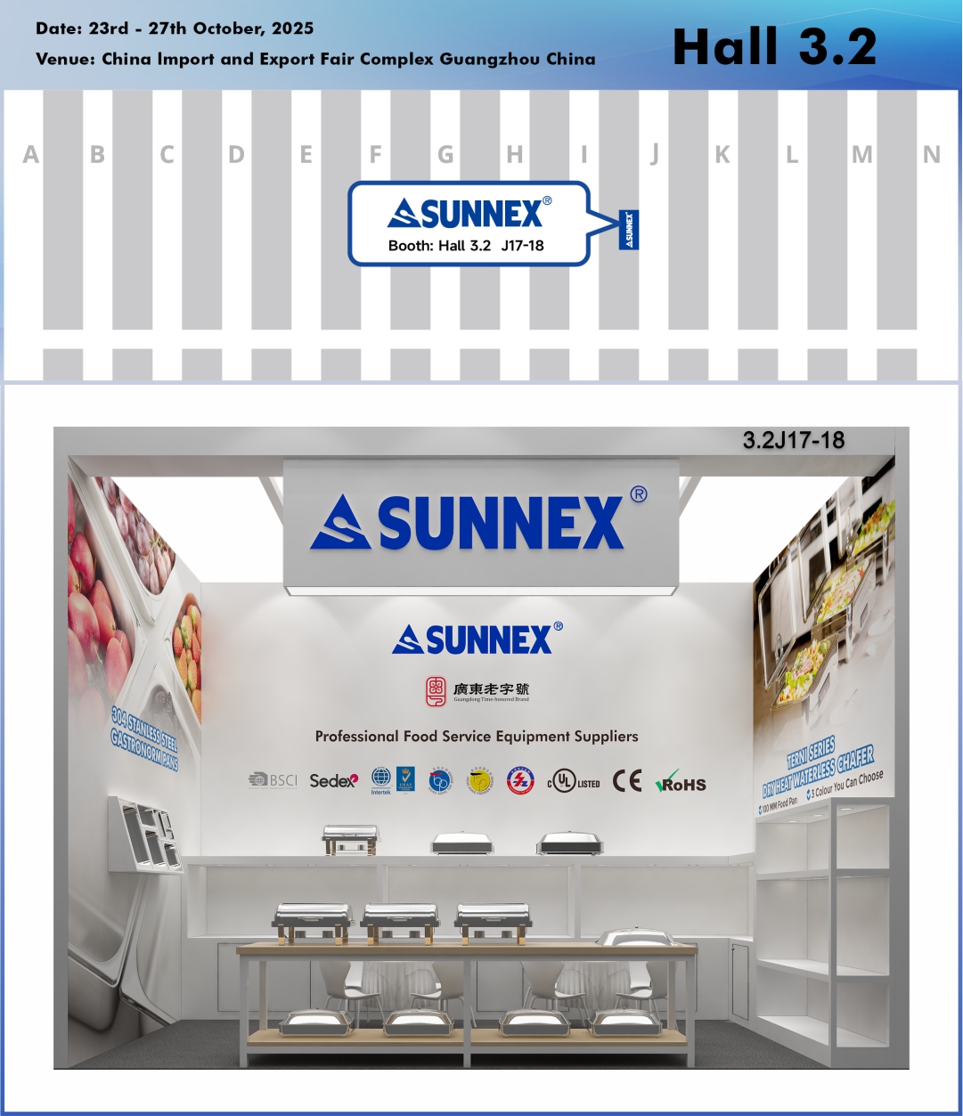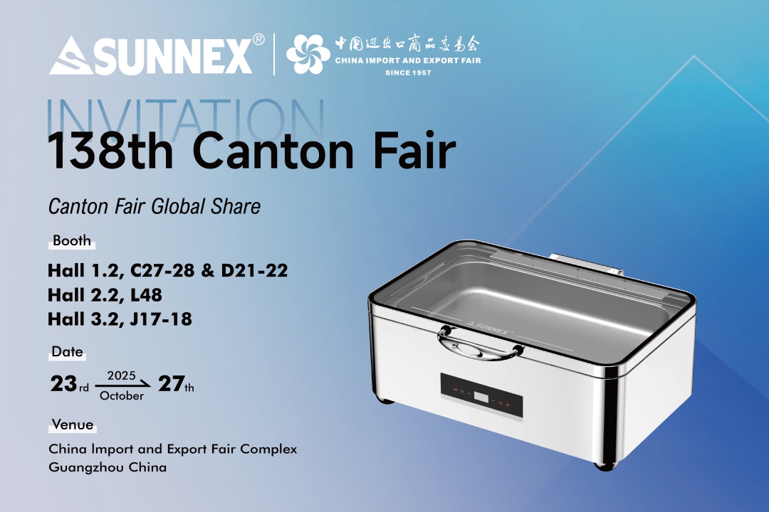 Guangzhou, China – Oktober 2025 – SUNNEX Century (Shenzhen) Ltd., ein führender Hersteller von Premium-Buffetgeschirr, Chafing Dishes, Getränkespendern und Haushaltswaren, freut sich, internationale Einkäufer, Medien und Branchenexperten zum Besuch unserer Stände auf der 138. China Import and Export Fair (Canton Fair) einzuladen.
