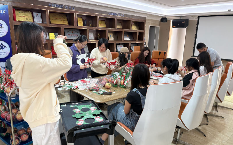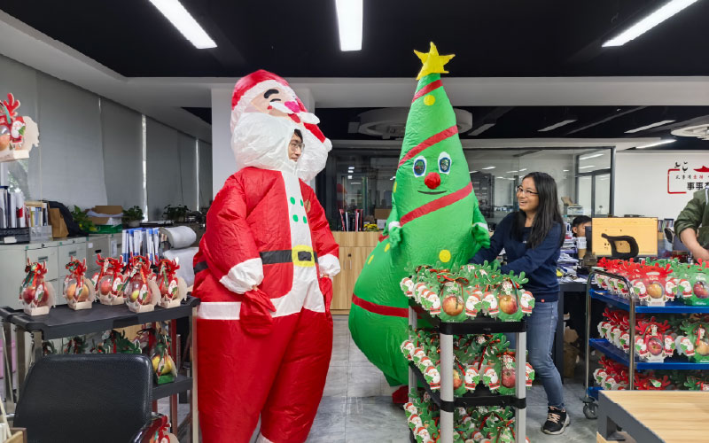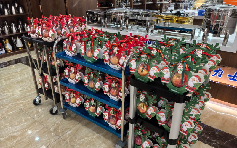 Sang ein Lied: „Wir wünschen Ihnen frohe Weihnachten, Wir wünschen Ihnen frohe Weihnachten…“, liebevoll verpackt und ein großer roter Apfel bedeutet Bedeutung Frieden, und dann schickte uns unser Weihnachtsmann zwei Friedensäpfel pro Stab mit Doppeltes Glück, wow, so süß wie eine große Familie.